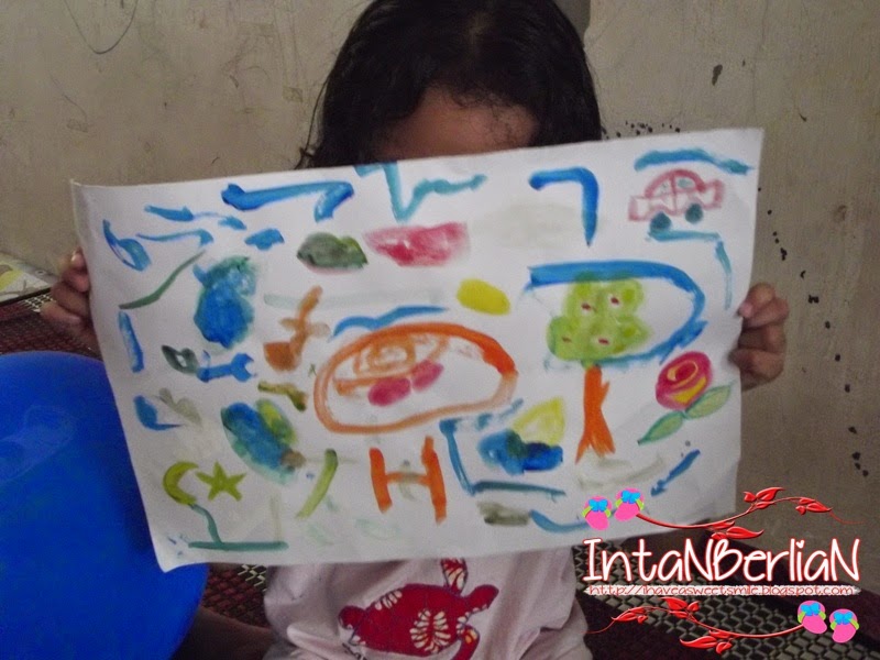 Alisha memang seronoklah dapat guna water colour ni... Sekarang ni saya tengah ajar Alisha untuk kenal huruf secara sepenuhnya pulak sebab saya nak masuk step ajar dia membaca pulak... Nasiblah Alisha ni dia walaupun suka main tapi dia jugak peminat buku + bagi perhatian bila diajar... Moga Tuhan cekalkan hati saya untuk ajar Alisha... saya pernah tulis dalam blog ni yang saya nak ajar Alisha dengan harapan Alisha pandai membaca sebelum umur 5 tahun @ sebelum 05/09/2015... Walaupun anak orang lain lagi awai pandai membaca, tak kisah lah... Alisha ni bila nak sekolah tahun depan, baru lah ibu dia ni kalut nak mengajar..